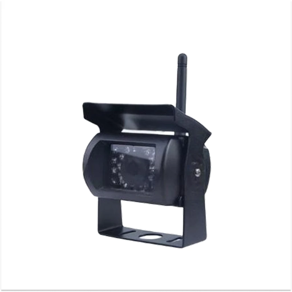 Камера заднего вида для автомобилей выполнена из металла и имеет защиту от влаги и пыли. Встроенная подсветка из 18 ИК-диодов позволяет камере снимать качественное видео в любое время суток. Угол обзора беспроводной камеры для авто составляет 140°