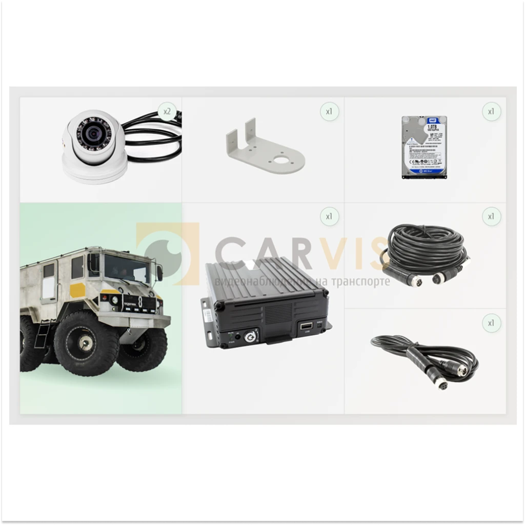 Комплект CARVIS для севера: 2-4 камеры Full HD, запись на HDD/SD, защита IP68, работа при -40°C...+70°C. Для спецтехники и грузовиков. ПП №969