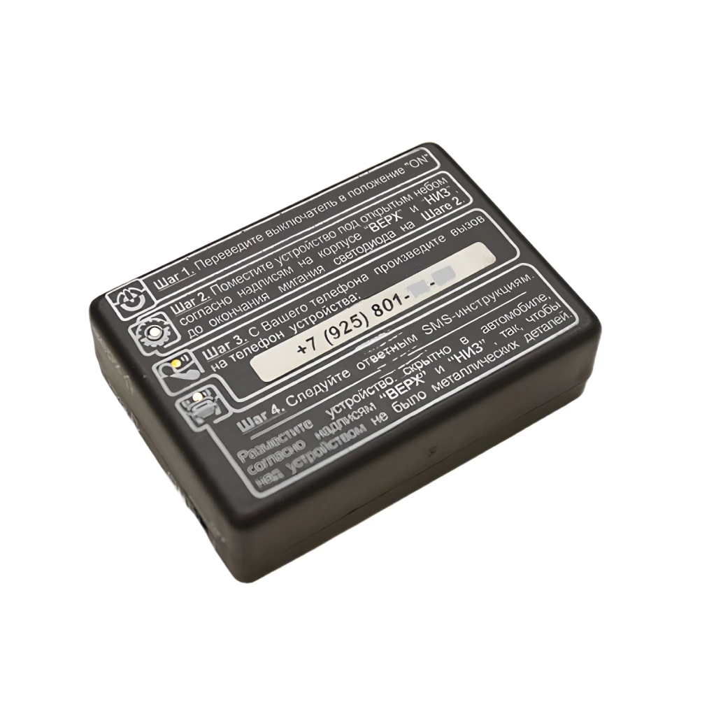 Устройство скрытно размещается в автомобиле, не подключаясь к его бортовой цепи. Размеры устройства позволяют спрятать его в самых непредсказуемых и труднодоступных для злоумышленника местах. В автомобиле таких мест много.